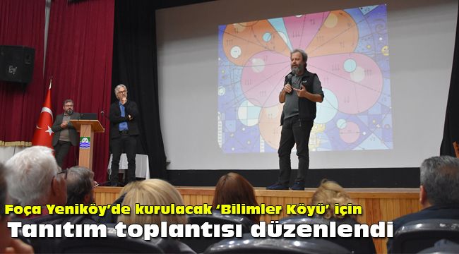 Foça Belediyesi ve Bilimler Vakfı arasında imzalanan ortak hizmet protokolü ile Yeniköy’de kurulacak ‘Bilimler Köyü’nün tanıtım toplantısında, kurucu kurul üyelerinden Doç. Dr. Alper Dizdar ve Alparslan Budak, Prof. Dr. Mehmet Gencer ve Bilimler Köyü Vakfı iletişim sorumlusu Gonca Doğan; eğitim programları, etkinlikler, yerleşke, organizasyon yapısı, hedef kitle ve benzeri konularda bilgiler aktardı.Bilimler Vakfı üyesi Cem Eden’in sunuculuğunu yaptığı toplantı, 14 Aralık Cumartesi günü foça Belediyesi Reha Midilli Kültür Merkezinde gerçekleştirildi.Bilim Işığı Foça’dan yükselecekDoğal güzellikleri ve zengin tarihi ile akıllarda yer eden ‘Foça’ adının, yakın gelecekte bilimle de anılmaya başlayacağını ifade eden Foça Belediye Başkanı Fatih Gürbüz; ‘‘Bilim Işığı Foça’dan yükselecek. Bilimler Köyü, kentimize önemli bir değer katacak. 2020 yazının ilk günlerinde, Yeniköy’de ilk öğrencileri ve öğretim faaliyetlerini görmeyi heyecanla bekliyoruz. Foça Belediyesi Meclisimize, Bilimler Vakfına ve katkı sağlayan herkese çok teşekkür ediyorum.’’dedi. Bilimler KöyüBilimler Köyünde, gençlere bilimi sevdirmek, eleştirel ve felsefi düşünmenin önemini kavratmak için, çeşitli bilim ve sanat dallarında etkinlikler düzenlenecek.Foça Belediye Meclisinde oybirliğiyle geçen karar uyarınca arazi tahsisi yapılıp, 7 Ekim 2019 tarihinde Foça Belediyesi ve Bilimler Vakfı arasında Bilimler Köyü için ortak hizmet protokolü imzalanmıştı. Yeniköy’de, 74 dönümlük bir arazi üzerinde, Foça’ya 14 km uzaklıkta bilim, kültür ve sanat merkezi hayata geçecek.Mimari tasarımlar değerlendirilerek köyün inşası aşamasına gelindi. Doğal ortama uyumlu yapısı, minimal inşaat alanı ile gençlerin vazgeçemeyeceği bir ortam oluşturmak hedefleniyor.Foça’da ve şimdilik İstanbul’daki gönüllülerin, akademik üyelerin değişik üniversitelerde bu konuya katkıları sürüyor. Kuruluş sürecinde bağışlar, inşaat ve daha ilerideki günlerde öğrenci bursları, akademik takvim ile yoğunlaşacak bir süreç geliyor.