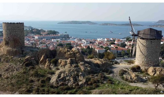 Ege Bölgesi'nin şirin ilçelerinden Foça'daki yel değirmenleri görenlerin ilgisini çekerken, 350 yıllık değirmenler tarihe de ışık tutuyor.
