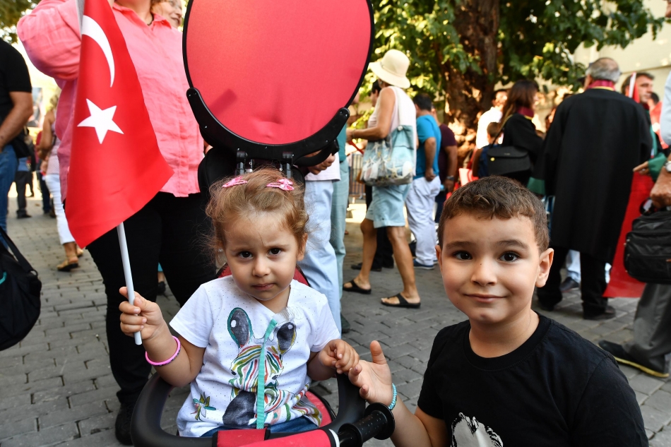 İzmir'in kurtuluşunun 96. yıldönümü kutlamaları yine büyük bir katılım ve coşkuya sahne oluyor. Bu anlamlı günün ilk etkinliği "Zafer Yürüyüşü"ne binlerce İzmirli katıldı. İzmir Büyükşehir Belediyesi'nin hazırladığı 350 metre uzunluğundaki Türk Bayrağı taşıyan İzmirliler, Türk Ordusu’nun 9 Eylül 1922'de kente girdiği güzergâhı kullanarak Basmane Karakolu önünden Cumhuriyet Meydanı'na dek yürüdü.