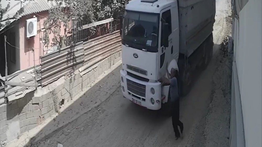 Öte yandan olay, çevredeki bir binanın güvenlik kamerası tarafından kaydedildi. Görüntülerde, şoförün, bir anda yokuş aşağı hareket etmeye başlayan kamyonun kapısını açmaya çalıştığı, ancak başarılı olamadığı; daha sonra da kamyonun evin duvarına çarparak durduğu anlar görüldü.
