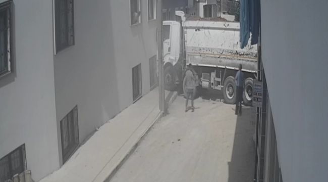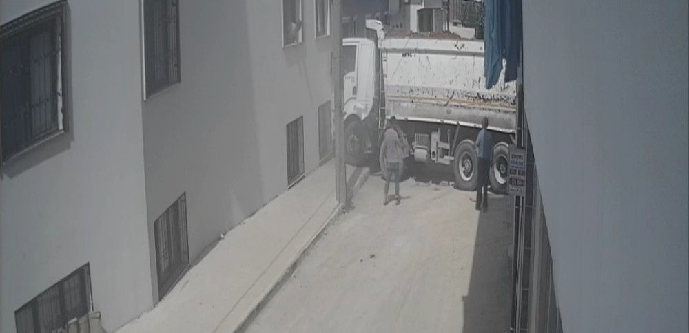 Olay anında sokakta ve kamyonun çarptığı evin darbe alan bölümünde kimsenin olmayışı, olası bir facianın önüne geçti.
