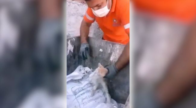 Temizlik İşleri ekipleri çöp topladıkları sırada çöp konteynerinde yavru bir kedi olduğunu fark etti. Kedi, çöp kutusunda bulunan çuvalın ipleri boynuna dolandığı için yaşam mücadelesi veriyordu. Belediye çalışanları, zor nefes alan yavru kediyi kurtarmak için hızla harekete geçti. Veteriner ekiplerine haber verecek zaman olmadığını fark eden temizlik ekibi, uzun uğraş sonucunda yavru kediyi boynuna sarılan ipten kurtardı. Boğulmak üzere olan kediyi ipten kurtaran ekipler, yavru kediyi daha sonra çöp kutusundan çıkararak yaşam alanı olan sokağa bıraktı.