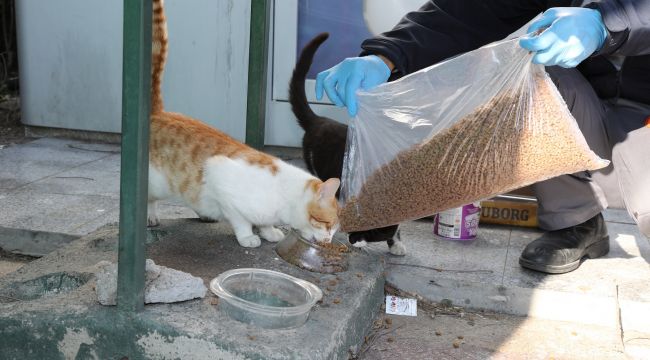 Gaziemir Belediyesi, salgın karşısında yurttaşların evlerinde kalması çağrısı sonrası sokak hayvanlarının aç kalma riskine karşı mama dağıtımını artırdı.