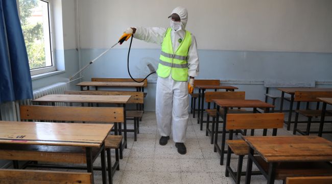 Ekipler, ilçe sınırlarındaki sınav merkezi olarak kullanılacak tüm okulları dezenfekte ederek çocuklar için güvenli bir ortam yaratıyor. Okulların giriş kapısından başlayarak sınıfları, koridorları, kapı kollarını ve tuvaletleri dezenfekte eden ekipler; müdür odası, öğretmenler odası ve idari ofisleri de hijyenik hale getiriyor.