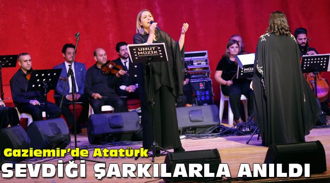 Gaziemir Belediyesi, Türkiye Cumhuriyeti’nin kurucusu Ulu Önder Mustafa Kemal Atatürk’ün ölümünün 81’inci yıldönümünde ‘Ata’yı Anma Konseri’ düzenledi. 10 kasım Atatürk’ü Anma Günü ve Atatürk Haftası etkinlikleri kapsamında düzenlenen özel konserde, İzmir Devlet Türk Dünyası Dans ve Müzik Topluluğu sahne aldı. Atatürk Kültür Merkezi’ndeki konserde Atatürk’ün sevdiği şarkıları seslendiren topluluk, seyirciye müzik ziyafeti sundu. Solistlerin seslendirdiği şarkılara konser boyunca eşlik eden Gaziemirliler duygu dolu anlar yaşadı. Ata’yı Anma Konseri’nde sahne alan topluluk üyesi dansçının zeybek gösterisi de seyircilere görsel şölen yaşattı.‘Atatürk’e borcumuzu çok çalışarak ödeyebiliriz’