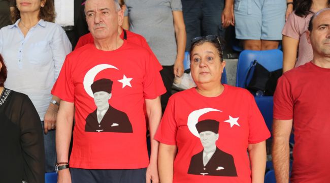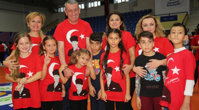 Gaziemir Belediyesi’nin düzenlediği spor kurslarının sezon açılışı Ahmet Taner Kışlalı Spor Salonu’nda düzenlenen muhteşem bir törenle yapıldı. Belediyenin karate, jimnastik, güreş, kick boks, taekwondo, hareket eğitimi, voleybol, badminton, boccia, basketbol, aerobik, bisiklet, halk oyunları branşlarında düzenlediği spor kurslarının açılışı Andımız okunarak yapıldı. Mustafa Kemal Atatürk’ün fotoğrafının yer aldığı tişörtleri giyen kursiyerler, tribünleri dolduran vatandaşlarla birlikte Andımız’ı okuyarak yeni eğitim dönemine merhaba dedi. Kursiyerler hazırladıkları gösterilerle de açılış törenine ayrı bir renk katarken oluşturdukları Atatürk Portresi ile coşkuyu zirveye taşıdılar.