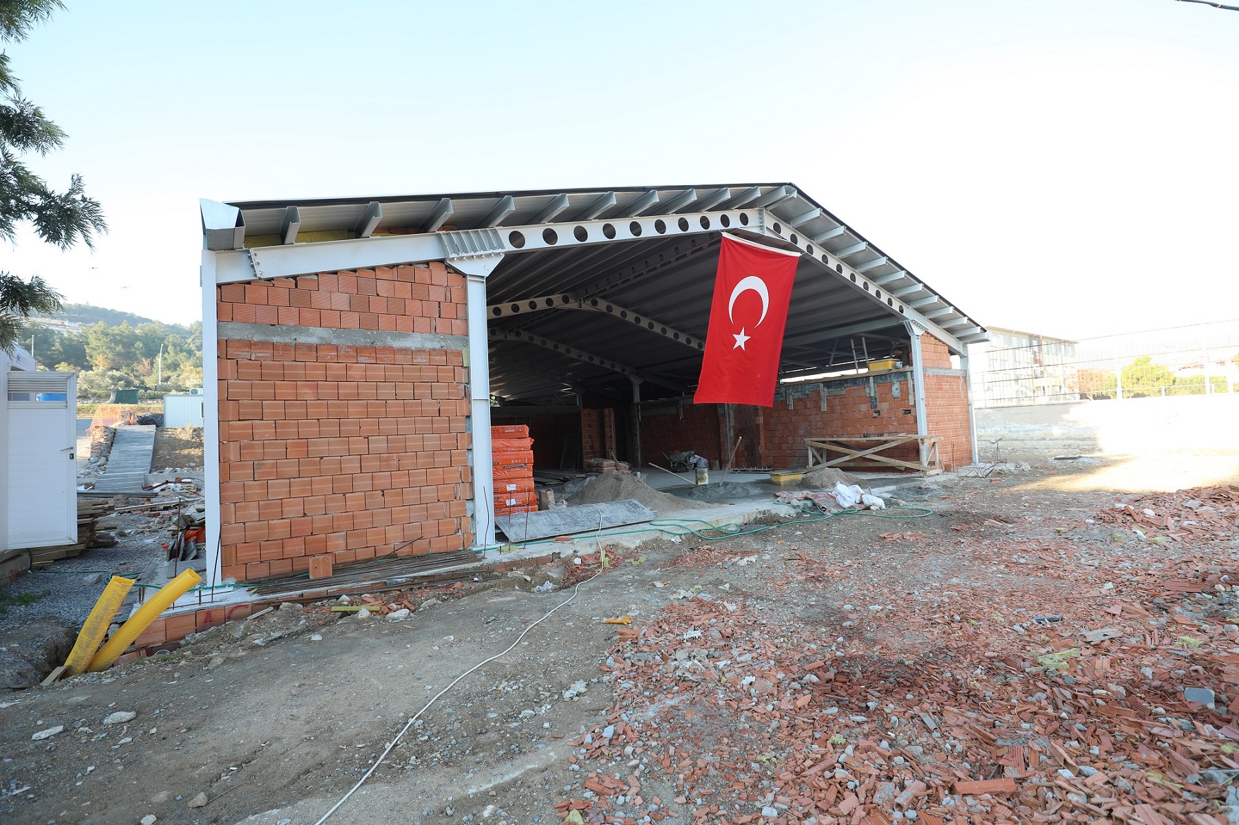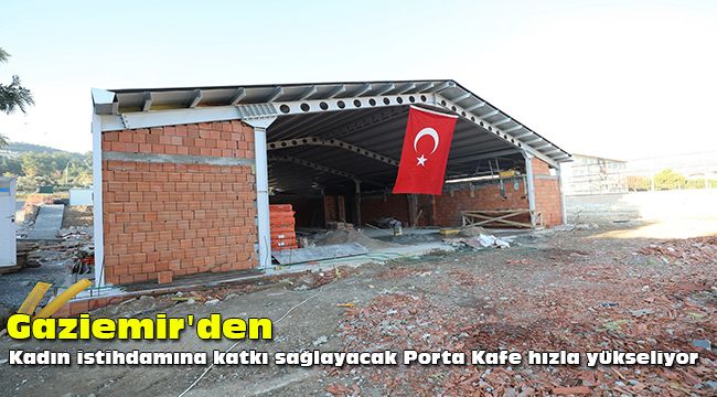 Gaziemir’de dezavantajlı kadınları desteklemek ve halkın kaliteli hizmet almasını sağlamak amacıyla hayata geçirilen Porta Kafe hızla yükseliyor. Sevgi Mahallesi Nevvar Salih İşgören Caddesi’nde, çelik konstrüksiyon sistemiyle inşa edilen Porta Kafede belediye ekipleri yoğun çalışmalarını sürdürüyor. Çelik kısımlarının montajı tamamlanan yapının duvarlarının örülmesi işleminde de sona yaklaşıldı.