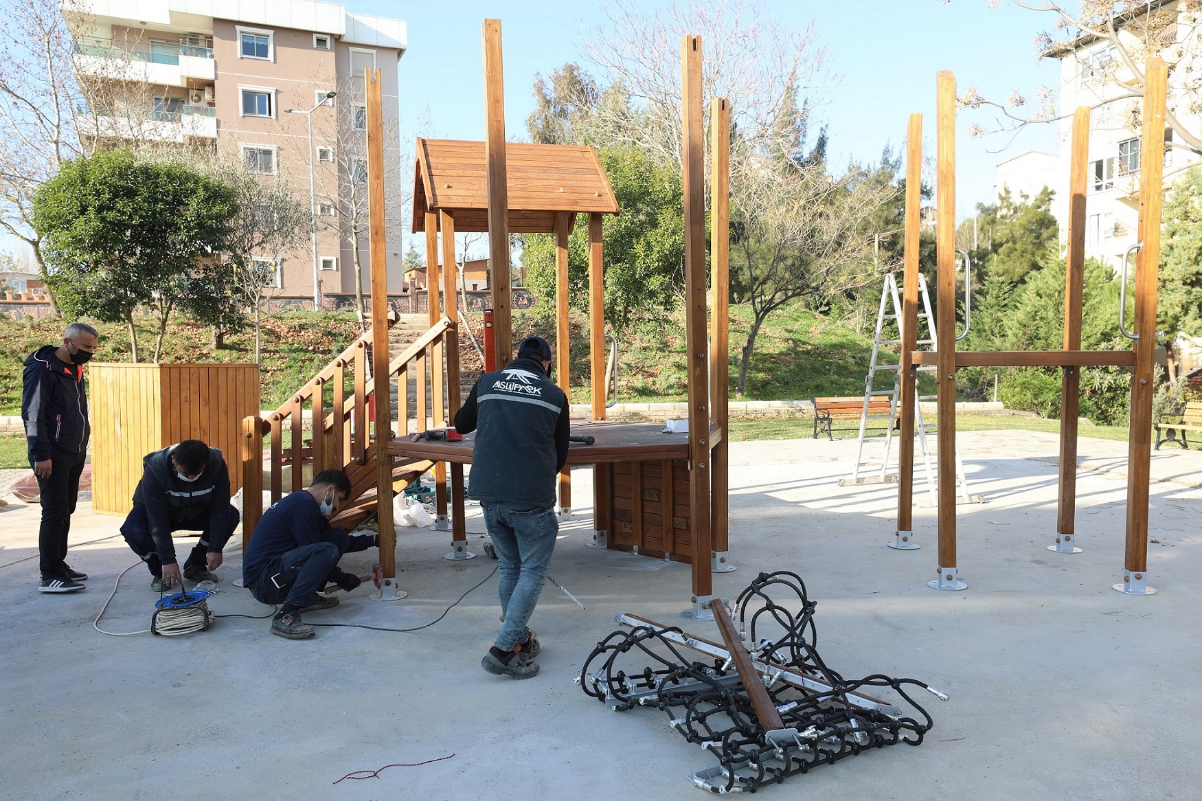 Şehit Hüseyin Şele Parkı’na oyun gruplarının montajını yapan belediye ekipleri, baştan sona yenilenen ve oyun alanının 250 metrekareye çıkarıldığı Şehit Ünsal Yaman Parkı’na oyun grupları kuruyor.