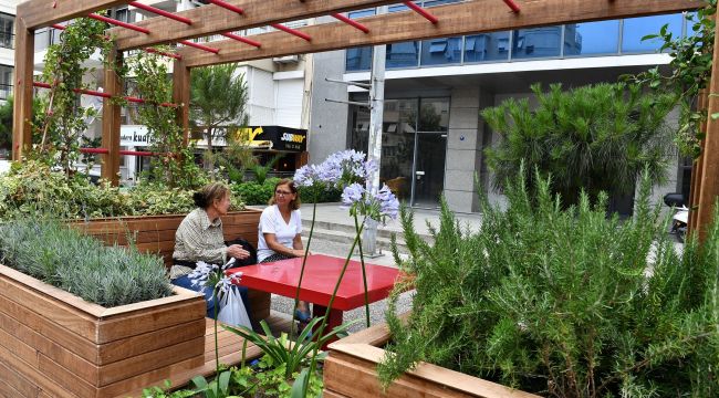 Trafiğin yoğun olduğu Girne Caddesi’nde karbon salımını ve ısı adası etkisini azaltmak, park eden araçlar arasında yeşil alan oluşturarak vatandaşların dinlenmesini sağlamak amacıyla cep parkı (parklet) yaptı. Her biri 5 metreye 2.5 metre alana sahip 2 modülden oluşan karşılıklı toplam 2 cep park için Büyükşehir Belediyesi 3 model tasarladı. Cep parklarının birinde çocuklar için minik oyun alanı, diğerinde gölgelik ve masa, bir diğerinde ise bisiklet parkı dikkat çekiyor. İzmir Büyükşehir Belediyesi cep parkı uygulamasını önümüzdeki günlerde Alsancak’ta da hayata geçirecek.