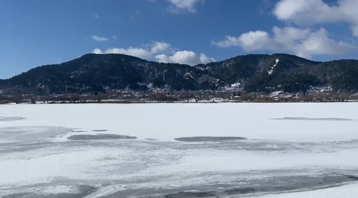 İzmir'in Ödemiş ilçesindeki Gölcük Gölü, hava sıcaklığının sıfırın altına düşmesi ile birlikte tamamen buzla kaplandı, ortaya kartpostallık görüntüler çıktı.