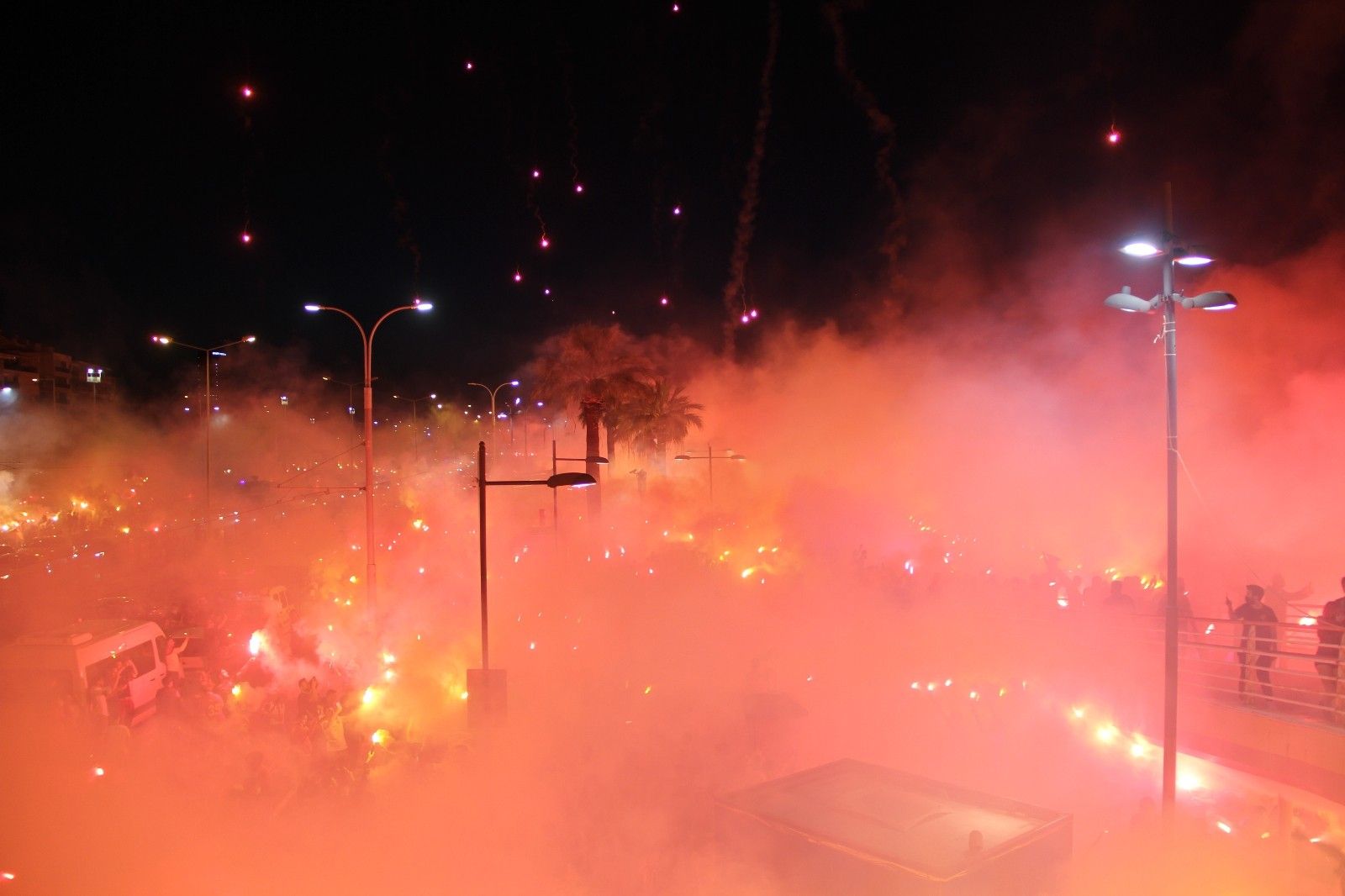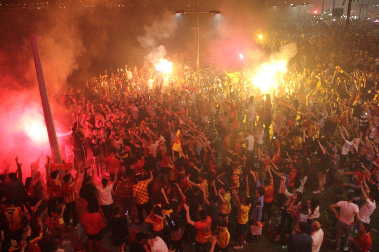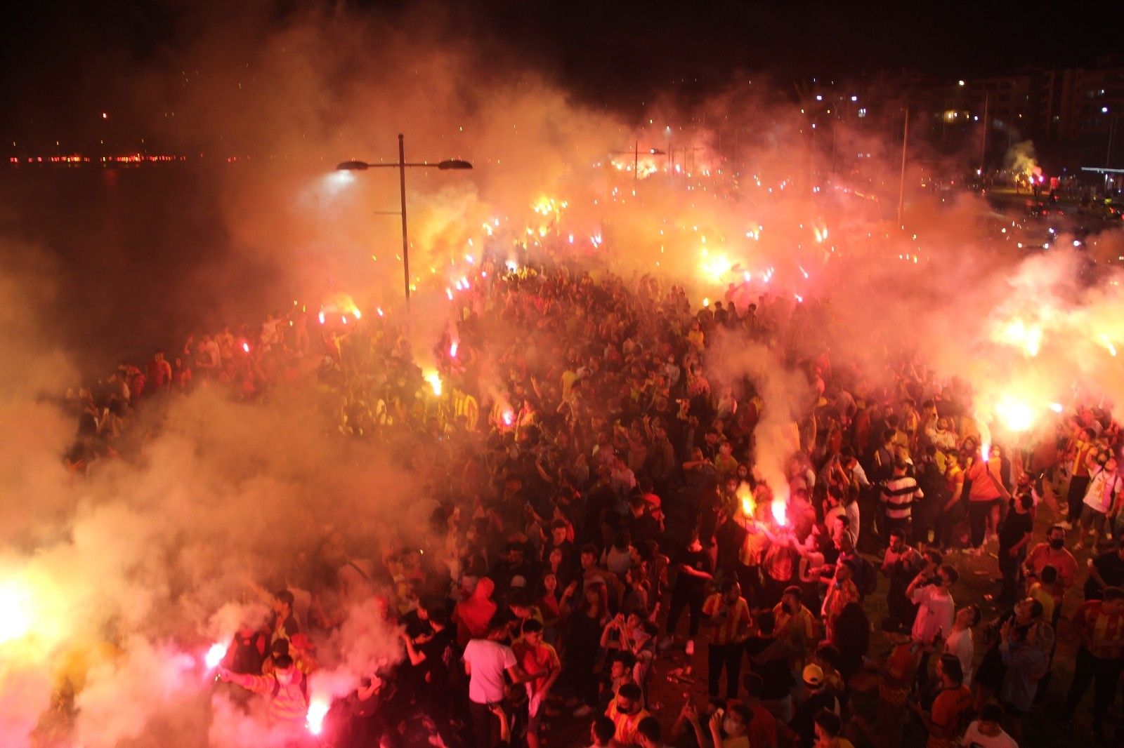 İzmir'in köklü kulüplerinden Göztepe, kuruluşunun 96. yıl dönümünü kutladı. Sarı-kırmızılı taraftarlar Mustafa Kemal Sahil Bulvarı'na akın ederek büyük bir coşku yaşarken, yaktıkları meşalelerle geceyi aydınlattı.