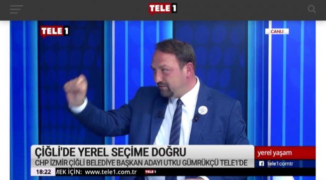Millet İttifakının Çiğli Belediye Başkan Adayı Utku Gümrükçü, TELE 1 kanalında Elçin Derya Demir’in sunduğu ‘Yerel Yaşam’ programına konuk oldu. Çiğli ile ilgili hedeflerini anlatan Gümrükçü: “Bu seçim sadece bir belediye seçimi değil. Toplumsal muhalefetin adayı olarak üzerimize düşeni yapıyoruz. Tüm seçmenlerden ricam; bu seçimde oy kullanmak bir vatandaşlık görevinin üzerine geçmiştir. 2019 yılının ekonomik şartlarını göz önünde tutarak sandığa gitmeleri ve oy kullanmalarını rica ediyorum”
