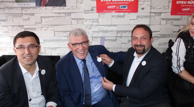Ataşehir Mahallesi seçim ofisinin açılışından sonra, Millet İttifakı Çiğli Belediye Başkan Adayı Utku Gümrükçü, İzmir Milletvekili ve İYİ Parti Genel Başkan Yardımcısı Müsavat Dervişoğlu’na Gülümseyen Çiğli rozeti taktı.