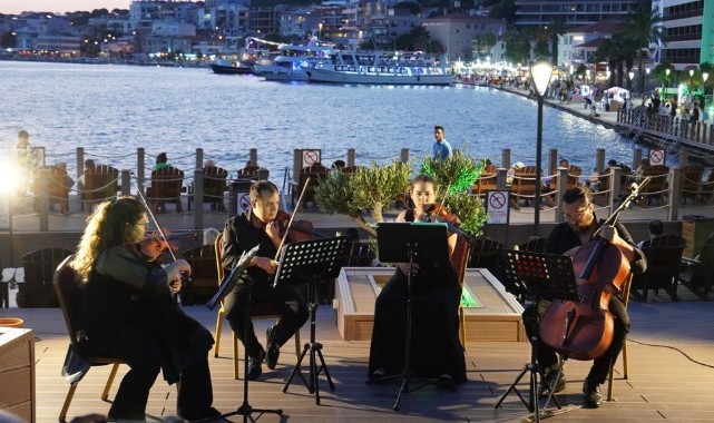 Çeşme Belediyesi tarafından düzenlenen, yaz ayları boyunca her Cuma devam edecek olan Çeşme ve Alaçatı Gün batımı konserleri nefes kesiyor. Güneşlenme Teraslarında vatandaşlarla bir araya gelerek dinletide buluşan Başkan Oran, “Çeşme sanatın merkezi olmaya devam edecek” dedi.