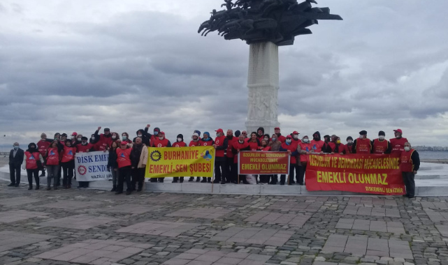 Disk'e bağlı Emekli Sen’in “gün gelecek devran dönecek AKP halka hesap verecek sloganı mitinge damga vurdu. Disk emekli sen üyeleri yaşasın sendika yaşasın disk , kurtuluş yok ya hep beraber ya hiçbirimiz, susma susturma sustukça sıra sana gelecek ,direne direne kazanacağız” sloganlarını attı.