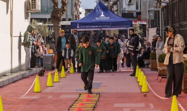 İzmir Büyükşehir Belediyesi’nin Güzel İzmir Hareketi kapsamında güvenli, çevre dostu ve rengarenk bir alana dönüştürülen Karabağlar Cevdet Güçlüer İlkokulu ve Yunus Emre Ortaokulu çevresi “Oyunlar da Bizim Sokaklar da Bizim” etkinliğine ev sahipliği yaptı. “Güvenli Okul Çevreleri” temasıyla oluşturulan Oyun Sokağı, çocuk sesleriyle dolup taştı. Pembe ve mavi renklerin hakim olduğu alanda çocuk şarkıları eşliğinde oyunlar oynayan çocuklar, Duygu Duvarı'nda hayal güçlerini resme döktü.