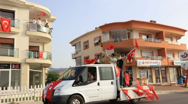 Bu yıl farklı bayramlar yaşadıklarını söyleyen Güzelbahçe Belediye Başkanı Mustafa İnce, “Tüm dünyayı etkileyen bir virüsle mücadele ediyoruz. Bu süreç bir arada hep birlikte olduğumuz bayramlarımızı şimdilik kısıtlamış olabilir fakat biz yine de halkımızla birlikte balkonlardan, pencerelerden 19 Mayıs ruhunu yaşatmaya devam ediyoruz. 19 Mayıs’ta ulusal kurtuluş savaşı için yola çıkan Gazi Mustafa Kemal Atatürk, başka ulusların topraklarını işgal etmek için değil, kendi vatan topraklarını korumak için savaş başlattı. 101 yıl önce Atatürk’ün bindiği Bandırma vapurundayız hepimiz. Hepimiz aynı gemideyiz. Bu ülkenin binlerce yıl payidar kalması için canla başla çalışmaya devam edeceğiz.” dedi. Güzelbahçe Yalı ve Yelki mahallelerinde havai fişek gösterileriyle 19 Mayıs coşkusu doruğa ulaştı.