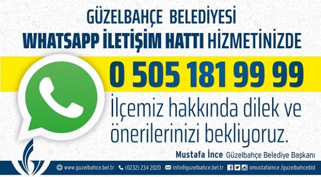 ‘WhatsAppGüzelbahçe’ adıyla hizmete giren uygulama için vatandaşların, 0505 181 99 99