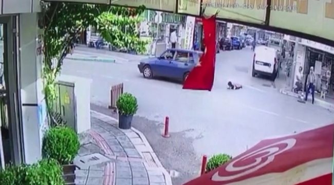 Bu esnada otomobilin sağ arka kapısının açılmasıyla araçta bulunan 3 yaşındaki çocuk düştü. Yola savrulan küçük çocuk arkadan gelen başka bir otomobilin altında kalmaktan son anda kurtuldu.