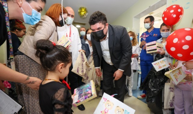 Buca Belediye Başkanı Erhan Kılıç, 23 Nisan Ulusal Egemenlik ve Çocuk Bayramı kutlamaları kapsamında İzmir Demokrasi Üniversitesi Buca Seyfi Demirsoy Eğitim ve Araştırma Hastanesi Kadın Doğum ve Çocuk Hastalıkları Ek Hizmet Binası’nda tedavi gören çocukları ziyaret etti. Başhekim Doç. Dr. Mehmet Yekta Öncel, Başhekim Yardımcısı Uzm. Dr. Gülşah Şehitoğlu Alpağut ve Eğitim Sorumlusu Prof. Dr. Murat Anıl ile beraber yeni doğan, çocuk ve çocuk cerrahi servisini gezen Başkan Kılıç, miniklerin bayramını kutladı.