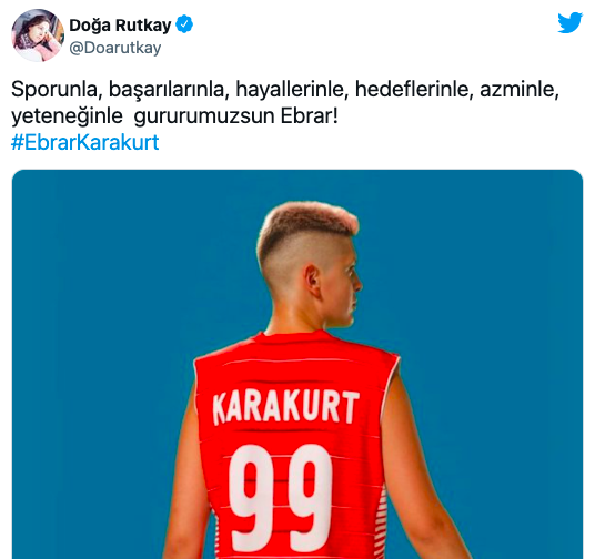 Türkiye A Milli Kadın Voleybol Takımı oyuncusu Ebrar Karakurt, Instagram hesabından dün kadın arkadaşıyla bir fotoğrafını paylaştı.Karakurt bu fotoğrafı nedeniyle gericiler tarafından hedef alındı.Sosyal medyada #EbrarKarakurt etiketi gündem oldu, Karakurt için binlerce destek mesajı paylaşıldı.Türkiye A Milli Kadın Voleybol Takımı oyuncusu Naz Aydemir Akyol, "Ne konuşulursa konuşulsun, herkesin bilmesi gereken en önemli şeylerden biri; Ebrar’ın; hakkında söylenen hiçbir şeye takılmayacağıdır! O sadece kendi işini en iyi şekilde yapabilmeye bakar. Gerisi de ne beni, ne sizi, kısaca kimseyi ilgilendirmez!" dedi.Sosyal medyada ebrar karakurt için yapılan destek paylaşımlarından bazılar şöyle: