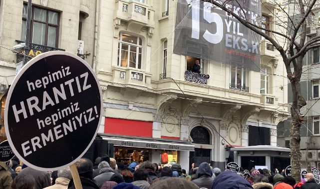 Hrant Dink 15 yıl önce bugün, 19 Ocak 2007'de genel yayın yönetmeni olduğu Agos Gazetesi önünde öldürüldü. Hrant anısına her yıl olduğu gibi bu yıl da saat 15.05'te katledildiği noktada İstanbul Şişli’deki gazete binasının önünde binlerce kişi toplandı.Katılanlar taşıdıkları döviz ve attıkları sloganlarla adalet istemekten vazgeçmeyeceklerini vurguladı. “Hrant Dink’in gerçek katilleri cezalandırılmadan ve bu alçak cinayetin hesabı tüm ortaklardan sorulana kadar biz bitti demeden bu dava bitmez” mesajı verildi.“Yaşasın halkların kardeşliği”, “Faşizme inat, kardeşimsin Hrant”, “Biz bitti demeden bu dava bitmez”, “Hepimiz Hrantız, hepimiz Ermeniyiz”, “Katlleri koruyan cinayete ortaktır”, “Buradayız ahbapig(kardeşim)” dövizleri açıldı, sloganları atıldı.ETKİLİ YARGILAMA YAPILMADIHrant Dink, Sabiha Gökçen’in Ermeni olabileceğine yönelik yaptığı bir haberden sonra