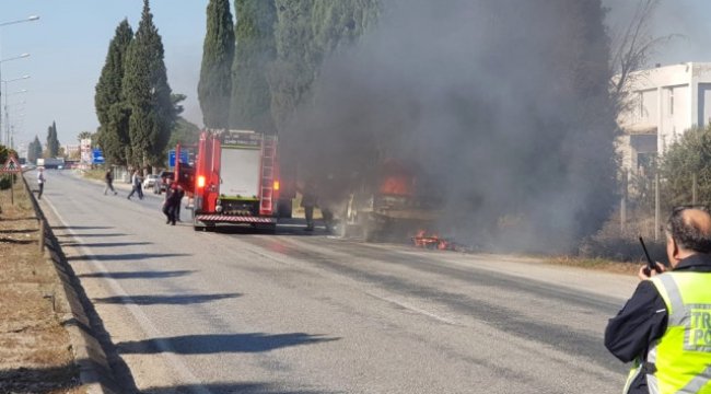 İzmir'in Torbalı ilçesinde seyir halinde ilerleyen hurda toplayan bir kamyonet, bir anda alev topuna dönerek cayır cayır yandı.Edinilen bilgiye göre, İzmir-Aydın yolu Yazıbaşı mevkisinde seyir halinde ilerleyen hurda yüklü bir kamyonet, aniden alev aldı. Alevler bir anda kamyonetin tamamını sardı. Durumu fark eden şoför, hemen aracını sağa çekti ve canını zor kurtardı ve durumu hemen itfaiye ekiplerine bildirdi. Kısa sürede olay yerine gelen itfaiye aracı, hemen alev topuna dönen kamyonete müdahale etti. İtfaiye, güçlükle yanan kamyonetteki yangını kontrol altına aldı.Yangın sonrasında araç kullanılamaz hale geldi. - İZMİR