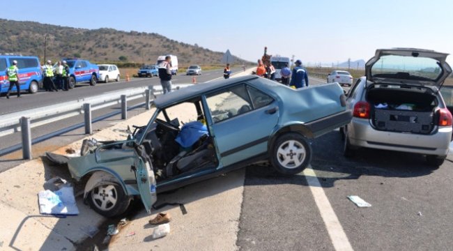 Bergama da iki otomobilin çarpışması sonucu meydana gelen kazada bir çift hayatını kaybederken, 2 kişi de yaralandı.Kaza, Bergama-Dikili karayolunda meydana geldi. Ali Derin (62) idaresindeki 45 VD 645 plakalı otomobil, İzmir'den Dikili yönüne seyrettiği sırada yoldan çıktı. Refüjü aşarak karşı şeride geçen otomobil, Ramazan Gezgin (61) idaresindeki 45 VT 901 plakalı otomobille kafa kafaya çarpıştı. Kazayı gören diğer sürücüler hemen sağlık ekiplerine ve güvenlik güçlerine haber verdi. Olay yerine gelene sağlık ekipleri, Cemile Gezgin'in (61) hayatını kaybettiğini belirlerken, kalbi duran eşi Ramazan Gezgin'in kalbi tekrar çalıştırıldı. Kazada diğer araçta bulunan Ali Derin ve Birsel Derin (60) de yaralandı. Ambulansla Bergama Necla Mithat Öztüre Devlet Hastanesine kaldırılan yaralılardan Ramazan Gezgin de kurtarılamadı.Kazada ölen Ramazan ve Cemile Gezgin çiftinin Dikili'de bulunan yazlıklarından memleketleri Soma'ya döndüğü öğrenildi. Jandarma, kazayla ilgili inceleme başlattı. - İZMİR