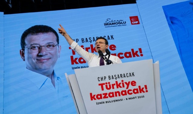 İstanbul Büyükşehir Belediye Başkanı ve CHP’nin 23 Mart’ta gerçekleştireceği Cumhurbaşkanlığı ön seçiminin tek adayı olan Ekrem İmamoğlu İzmir’de partililere seslenerek, adaylığını bir kez daha duyurdu. İmamoğlu, “Bugün benim için çok önemli bir gün. Ben önce aday sonra da Cumhurbaşkanı olarak yola çıkıyorum. Sarayda oturup ülkeyi yönetme gibi bir hayalimiz yok. Ben bir makama değil zorlu bir mücadeleye adayım" dedi