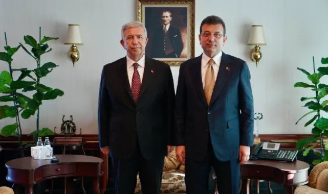 İstanbul Büyükşehir Belediye Başkanı Ekrem İmamoğlu, Ankara Büyükşehir Belediye Başkanı Mansur Yavaş'ı ziyaret etti.Türkiye Belediyeler Birliği Başkanı ve İstanbul Büyükşehir Belediye Başkanı Ekrem İmamoğlu, Ankara Büyükşehir Belediye Başkanı Mansur Yavaş'ı ziyaret etti. Ziyaret 50 dakika sürdü. Ziyarette belediyelerin sorunlarının konuşulduğu bildirildi. Görüşme sonrası Mansur Yavaş, "Türkiye Belediyeler Birliği Başkanı, İstanbul Büyükşehir Belediye Başkanımız Sn. Ekrem İmamoğlu'nu Belediyemizde ağırladık. Son günlerde CHP’li belediyelere yönelik oluşturulmaya çalışılan algı operasyonları başta olmak üzere belediyelere yönelik sorunları masaya yatırdık" paylaşımını yaptı.