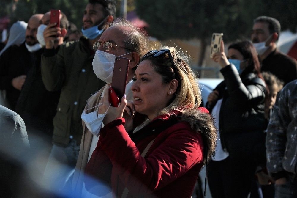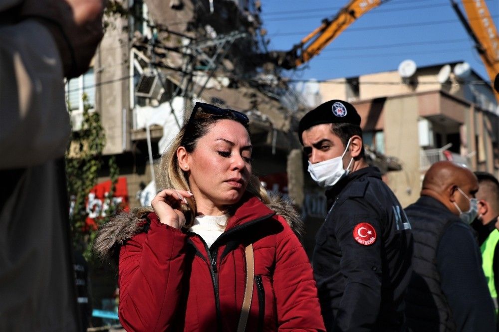 Binanın ağır hasarlı olduğunu söyleyen Ezgi Sert, "İş yerim yıkılıyor şu anda. Ağır hasarlıydı, yıkılma kararı alındı. O yüzden de içerideki hiç hiçbir eşyayı alamadık. Her şey içeride kaldığı için böyle izliyoruz. Yapacak hiçbir şey yok" dedi. Acılı kadının durumuna duyarsız kalmayan vatandaşlar Ezgi Sert'in yanına gelerek teselli etmeye çalıştı.