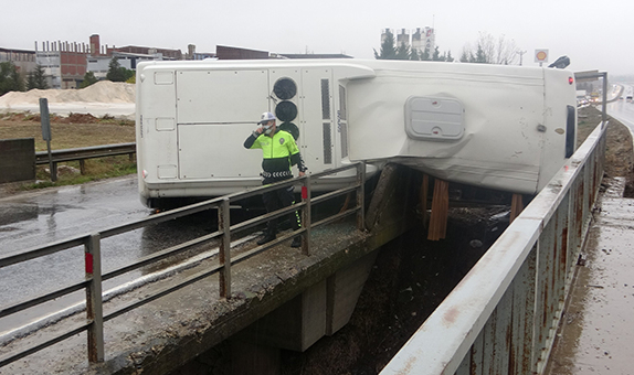 kaza yerinde trafik belli bir süre tek şeritten kontrollü bir şekilde ilerlerken devrilen araç vinç yardımıyla çekildi. Kazayla ilgili soruşturma başlatılırken, trafik 1 saatin sonrasında normale döndü. (İHA)