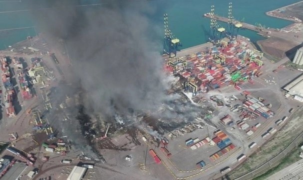 İskenderun Limanı'ndaki yangın üçüncü gününde havadan görüntülendi