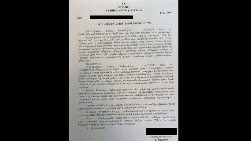 İstanbul Büyükşehir Belediye (İBB) Başkanı Ekrem İmamoğlu hakkında üniversite diplomasının sahte olduğu iddiasına ilişkin soruşturma başlatılmıştı.İstanbul Cumhuriyet Başsavcılığı'nın İstanbul Üniversitesi Rektörlüğü’ne İmamoğlu’nun diplomasına yönelik resmi bir yazı gönderdiği iddia edildi. Başsavcılığın, İmamoğlu’nun diplomasının iptal edilmesini istediği öne sürüldü.