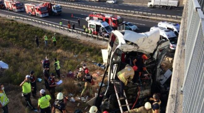 112 ekiplerinin yaptığı ilk kontrolde kazada biri şoför olmak üzere 5 kişinin hayatını kaybettiği öğrenildi. Hayatını kaybedenlerden bir tanesinin şoför olduğu öğrenildi. 10'u ağır 26 kişi ise yaralanarak çeşitli hastanelerde tedavi altına alındı. Kaza nedeni ile yol uzun süre trafiğe kapatıldı. Polis ekiplerinin kaza yerinde incelemeleri devam ediyor.
