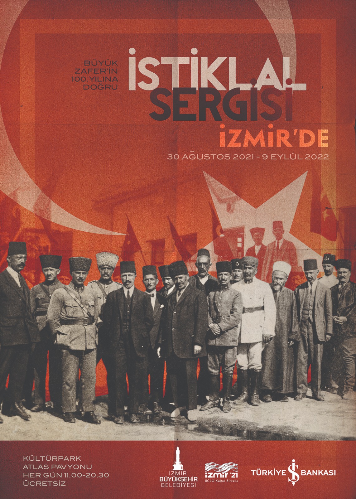 İzmir Büyükşehir Belediyesi 30 Ağustos Zafer Bayramı’nı kentte bir dizi etkinlikle kutluyor. Türk milletinin verdiği mücadeleyi bine yakın belge, fotoğraf, film ve objeyle anlatan İstiklal Sergisi, İzmir Büyükşehir Belediyesi, İş Bankası ve İş Sanat işbirliği ile 30 Ağustos Zafer Bayramı’nda Kültürpark Atlas Pavyonu’nda saat 18.00’de açılacak. İstiklal Sergisi, İzmir’de daha da zenginleştirilerek “Büyük Zaferin 100. Yılına Doğru İstiklal Sergisi” başlığı ile düzenlenecek. 9 Eylül 2022 tarihine kadar açık kalacak sergi saat 11.00 ile 20.30 saatleri arasında ücretsiz ziyaret edilebilecek.