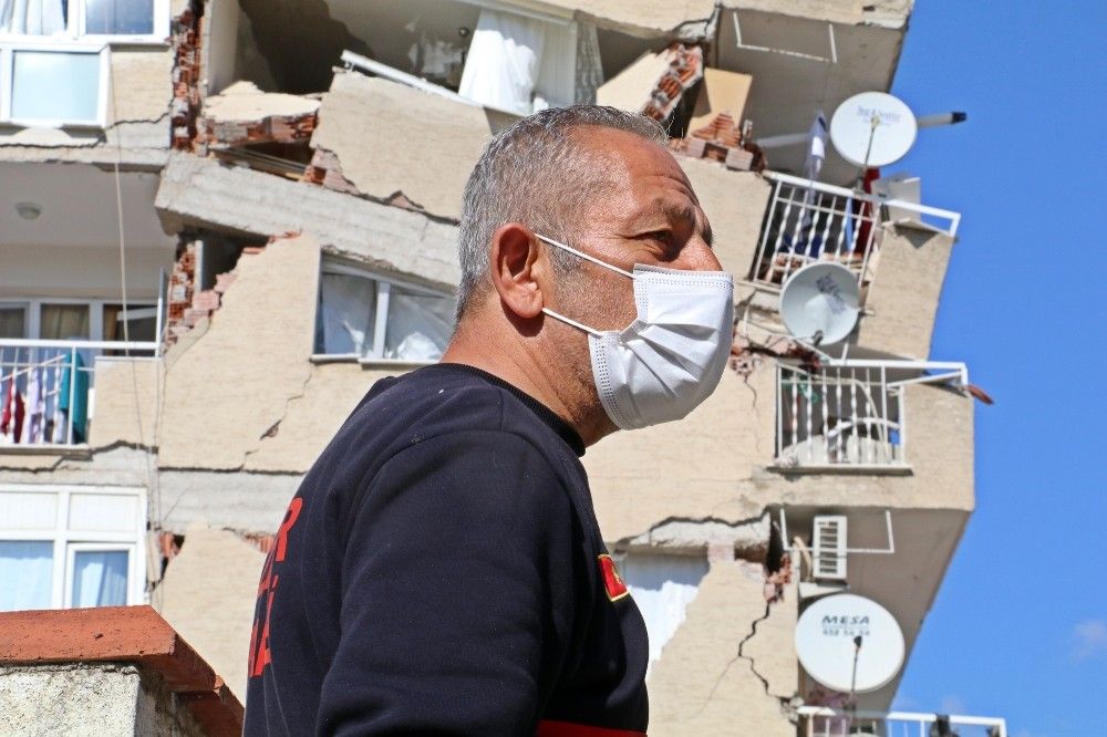 "Deprem olduktan 2 dakika sonrası kızım arayarak, 'baba ne olur bizi kurtar' dedi. Binanın yıkıldığı hiç aklıma gelmedi. Hemen arabaya atladım, yoldayken yine kızım aradı, 'Baba annem, ablam ölüyor. Ayaklarım duvarların altında ama ben iyiyim, annem kötü' dedi. Müdür bey aradı ve kurtarma çalışmalarının başladığını söyledi. Trafik sıkışıktı. Arabayı bırakıp koşarak geldim. Arkadaşlarımız çalışmaya başlamıştı. Merdiven dayamışlardı, oradan bizim eve çıktım ama bir baktım başka bir kapı, başka bir salon. Geri çıktım başka bir balkona geçtim. Zemin üstü 1. Kat bizim dairemiz olması lazım, içeriye girdim benim ev değil. Arkadaşların çalıştığı yere yöneldim ve orada kızımla annesi birbirlerine sarılmışlar betonların arasındalardı. Ayaklarımın bağı çözüldü. Hemen kendimi toparladım, kurtarma çalışmalarına arkadaşlarımla beraber başladım. Tırnaklarımızla, iğneyle kuyu kazar gibi çalıştık. Çünkü etraflarında doğalgaz borusu, demirler, kablolar vardı. Kızım ayağım diye bağırıyor, eşim de 'Mehmet ben nefes alamıyorum, ölüyorum' diyordu. Nasıl kurtardım bilmiyorum. İlk beni telefonla arayan kızımı kurtardım, ondan sonra büyük kızımı, ardından da eşimi çıkarttık. Hepsini Ege Üniversitesi'ne gönderdik."