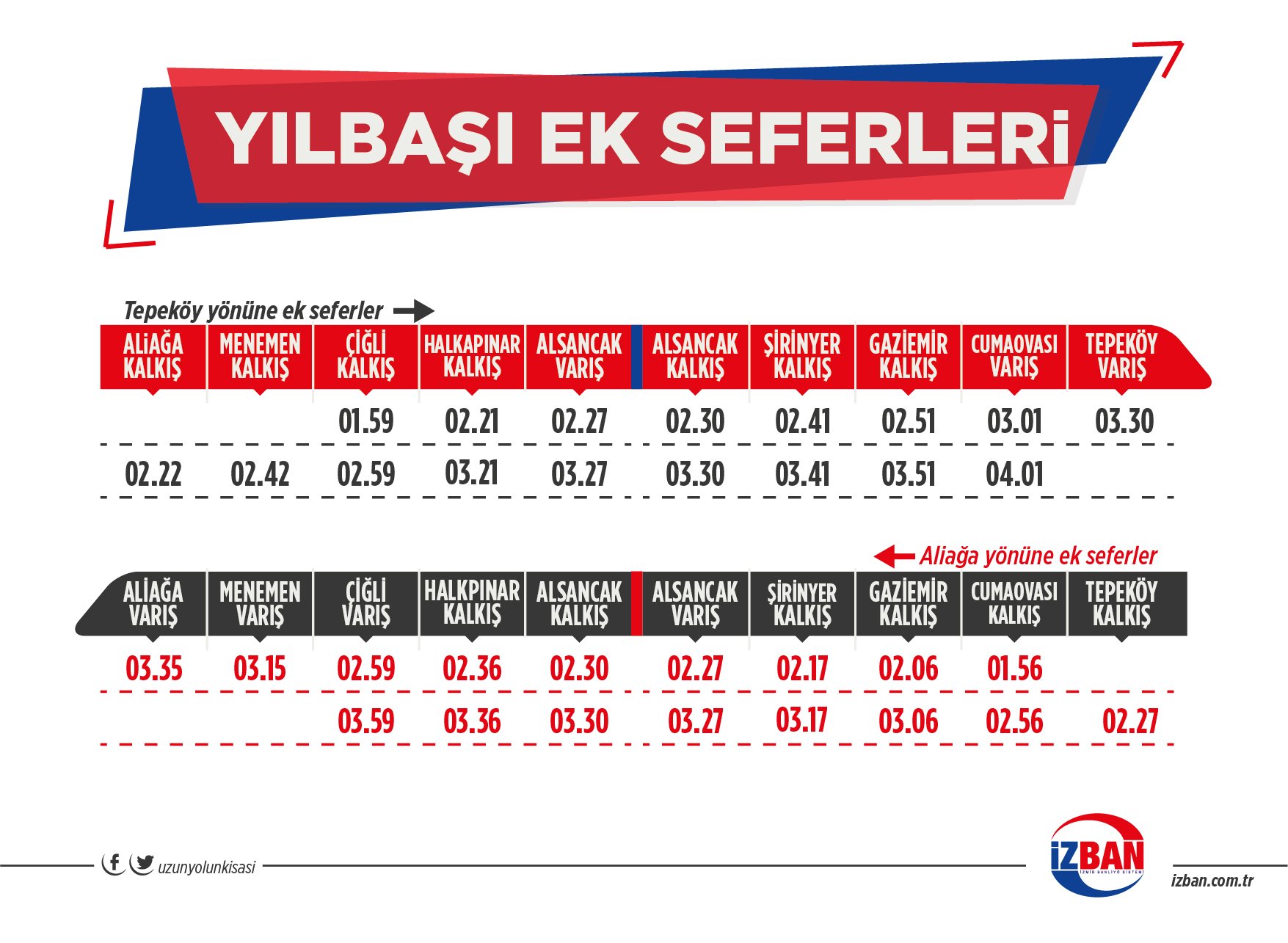 Cumaovası’ndan ise saat 01.56’ ve 02.56 olmak üzere yine iki ek sefer Çiğli için kalkacak.