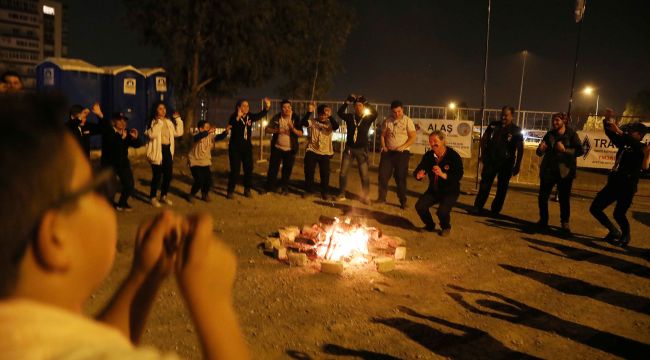 Kelime anlamı cümbüş, eğlence, kutlama, izci toplantısı anlamına gelen jamboree etkinliği için bir araya gelen izciler ilk olarak gece konaklayacakları çadırları dayanışma içinde tek tek kurdu. İzciler törenle Türk Bayrağı’nı göndere çekerek kamp açılışını gerçekleştirdi. Daha sonra TRAC Bayraklı Şubesi’nin bahçeye kurduğu seyyar telsiz istasyonu ile Avrupa’da Avusturya, Sırbistan, Arnavutluk, İtalya ve Almanya, Belçika ve uzak doğudan Japonya’da kamp kuran jota kampçıları ile telsiz sayesinde haberleşildi. Her yıl dünyanın her köşesinden izcilerin amatör radyoları sayesinde buluştuğu bir etkinlik olan Jota, 1958 yılında ilk “jamboree on the air” yapıldığından beri, milyonlarca izci bu yolla tanışmış, Jota sırasında kurulan bağlantıların çoğu, izci grupları arasında yıllarca sürdürülen mektup arkadaşlıklarına dönüştü. Bu kapsamda Bayraklı’da bir araya gelen izciler havanın kararmasıyla birlikte hep beraber kamp ateşi de yaktı. Ateş etrafında bir araya gelen izciler şarkılar söyledi, taklit yeteneklerini sergiledi. Geleneksel hale gelen ateş etrafında buluşmaya TRAC üyeleri de eşlik etti. İzciler geceyi kurdukları çadırda geçirerek etkinliği tamamladı.