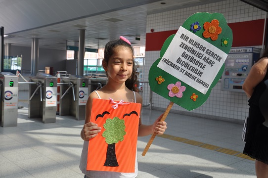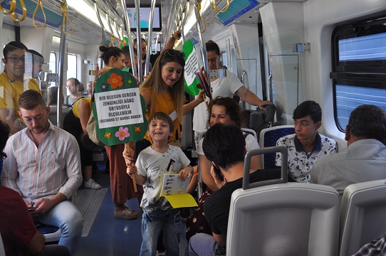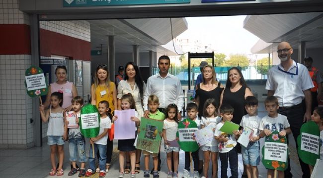 İZELMAN anaokullarında eğitim gören minik öğrenciler, İZBAN’a binerek yolculara orman yangınları ve çevrenin nasıl korunması gerektiği hakkında bilgiler verdi, farkındalık yarattı. Yolcular minik öğrencilerin aktardıklarını can kulağıyla dinledi.
