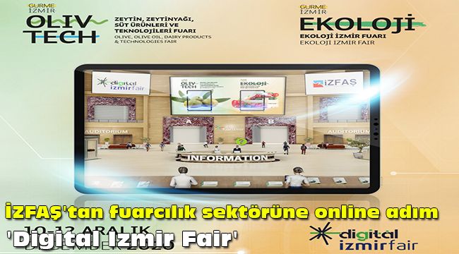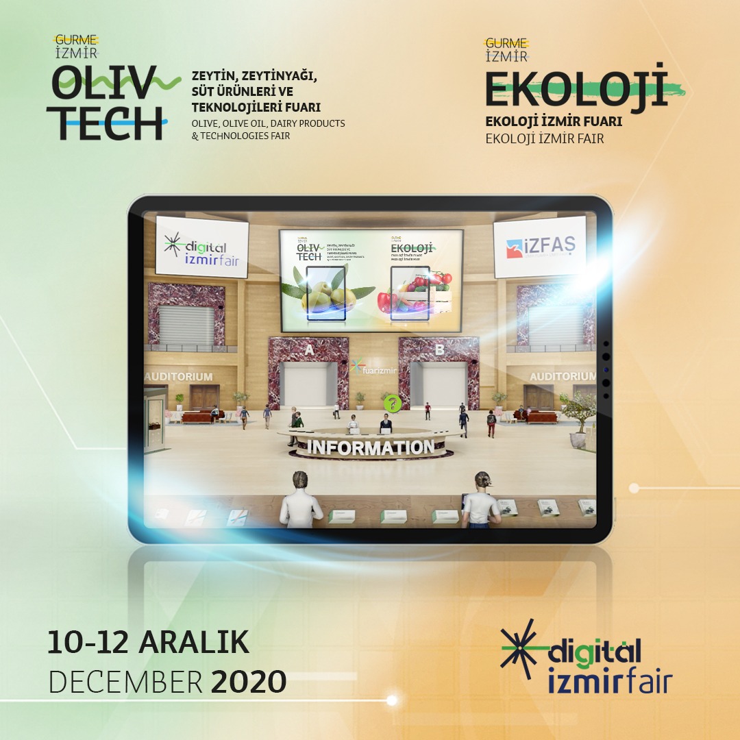 Bu yıl Nisan ayında düzenlenmesi gerekirken salgın nedeniyle ertelenen Olivtech - Zeytin, Zeytinyağı, Süt Ürünleri ve Teknolojileri Fuarı ile Ekoloji İzmir - Organik Sertifikalı Ürünler Fuarı, gurmeizmir.izfas.com.tr adresinde 10-12 Aralık tarihlerinde yapılacak. “Digital Izmir Fair”, Türkiye’de artırılmış gerçeklik kullanılarak tamamı yerli bir dijital altyapı ile hazırlanan ilk sanal fuar olacak.