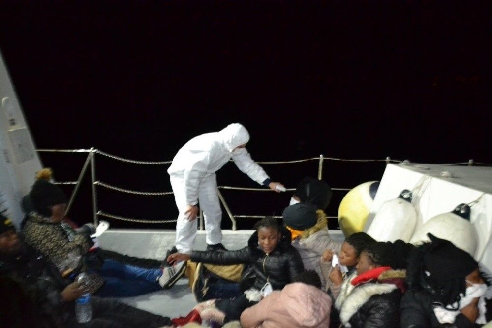 İzmir'in Seferihisar ilçesi açıklarında lastik bot üzerinde sürüklenen 21 düzensiz göçmen, Sahil Güvenlik ekipleri tarafından kurtarıldı.