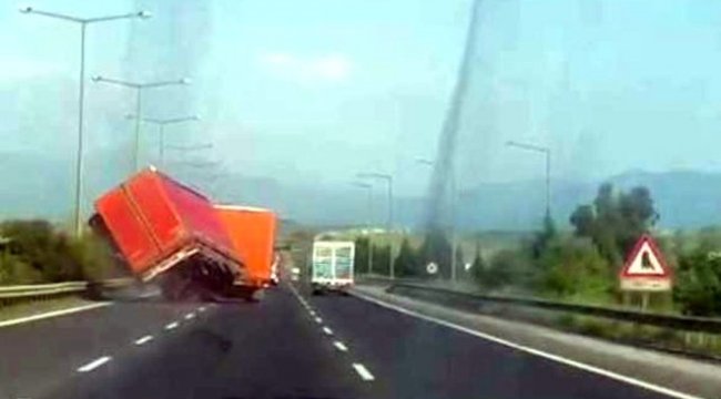 İzmir'den Bodrum'a gelen Eyüp Özay, yanından geçen tırın direksiyon hakimiyetini kaybettiğini gördü. Cep telefonuna sarılan Özay, tırın bir anda savrulduğu anı saniye saniye cep telefonuyla kaydetti.