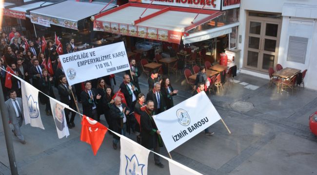 İzmir Barosu'nun "Gericiliğe ve Emperyalizme Karşı 110 Yıl!", "Cumhuriyet İçin Bağımsız Yargı, Bağımsız Yargı İçin Cumhuriyet" ve "Laik Cumhuriyetin Avukatıyız" pankartları ile gerçekleştirdiği geçiş töreni sonrası bir açıklama yapan Baro Başkanı Av. Özkan Yücel, Valiliğin Cumhuriyet Bayramı kutlamalarına sadece yirmi kişi ile katılabilirsiniz şeklindeki yazısını hayretle karşıladıklarını söyleyerek, İzmir Barosu’nun ve İzmir Barosu üyesi avukatların Cumhuriyetin kurucu değerlerinin yüceltildiği özel günlere ilginin türlü bahanelerle azaltılmak istenmesini kabul etmelerinin mümkün olamayacağını vurguladı. Yönetim Kurulu tarafından alınan karar sonrası Baroya getirilmek istenen 20 kişilik sınırı yüzlerce avukatın katılımı ile aştıklarını belirten Av. Özkan Yücel, sözlerini “Bizde bu dayanışma varken, İzmir Barosu hiçbir güç önünde eğilmeyecektir. Bundan emin olabilirsiniz. Bugün bir kere daha Cumhuriyet’in bütün değerlerine sahip çıktığımızı, onları daha ileri taşıma azminde olduğumuzu gösterdik. Katılımınız ve desteğiniz için çok teşekkür ederim” şeklinde tamamladı.