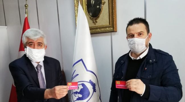 İlk kartı da İzmir Berber Odası Başkanı Şükrü Bilgin üyesi Volkan Berber’e imza karşılığı takdim etti.