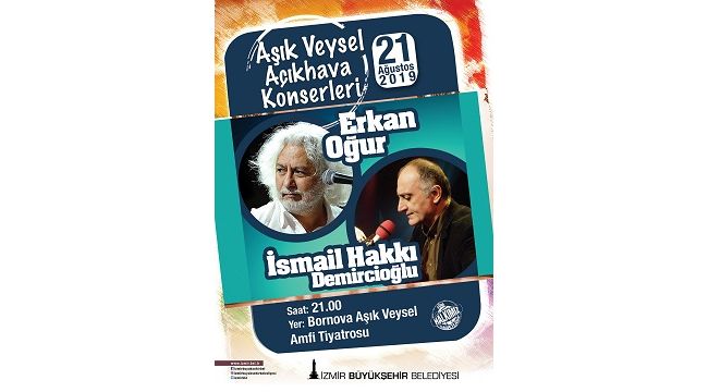 İzmir büyükşehir belediyesi tarafından düzenlenen ve yaz akşamlarına farklı bir soluk getiren geleneksel açıkhava konserleri kentte sanat rüzgarı estirmeye devam ediyor. Bu yıl ikinci kez düzenlenen “Aşık Veysel Açıkhava Konserleri”nde de birbirinden değerli sanatçılar sahne alacak. 10 Temmuz’da başlayan konserler dizisi 18 Eylül’e kadar devam edecek. Usta sanatçılar saat 21.00’de Bornova Aşık Veysel Amfi Tiyatrosu’nda İzmirlilere müzik dolu akşamlar yaşatacak.