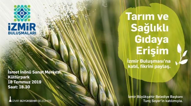 Seçim öncesinde katılımcılığı meslek odaları, sivil toplum ya da hemşeri dernekleriyle sınırlı tutmayacaklarını, halkı da sürecin içine dahil edeceklerini söyleyen İzmir Büyükşehir Belediye Başkanı Tunç Soyer, Kültürpark ile başlattığı İzmir Buluşmaları'nın ikincisini “Tarım ve Sağlıklı Gıdaya Erişim” başlığı altında gerçekleştiriyor. "İzmir Buluşması'na katıl, fikrini paylaş" sloganıyla duyurulan toplantı, 18 Temmuz’da İsmet İnönü Sanat Merkezi’nde 18.30'da yapılacak.