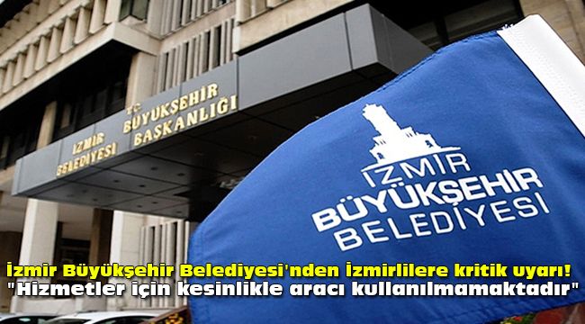 Yapılan açıklamada, “Son günlerde bazı hemşerilerimizin kendini yetkili olarak tanıtan kimliği belirsiz kişilerce telefonla arandığı, bu kişilerin aradığı hemşerilerimizi askıda fatura uygulaması kapsamında ödeme yapmaya teşvik eder gibi görünerek dolandırıcılık girişiminde bulunduğu öğrenilmiştir. İzmir Büyükşehir Belediyesi ve bağlı kuruluşlarının hizmet ve uygulamaları doğrudan ve şeffaflık içerisinde kamuoyuyla paylaşılmakta, bu tür hizmetler için kesinlikle aracı kullanılmamaktadır” denildi.