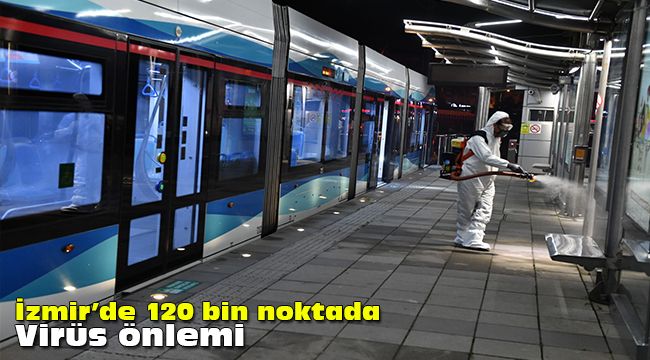 Okul, taksi, dolmuş, ibadethane, ESHOT ve İZULAŞ araçları, aile sağlığı merkezleri, 112 Acil Ambulansları, hastane, muhtarlık ofisi, körfez vapurları, metro-İZBAN araç ve istasyonları, park, eczane, PTT şubesi, banka, temizlik araçları, moda evi, kuaför ve berber salonları, restoran-kafe, kamu kurum ve kuruluşlarının hizmet binaları olmak üzere toplam 120 bin noktada dezenfeksiyon çalışması yapıldı; 4 bin 382 litre dezenfektan kullanıldı.Büyükşehir, tüm bu alanlarda düzenli olarak dezenfeksiyon çalışmalarını sürdürüyor.