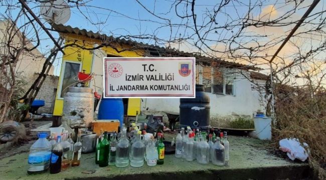 İzmir İl Jandarma Komutanlığı, sahte ve kaçak içki ticareti ile kullanımının önlenmesi kapsamında tekel bayi, büfe, bakkal, nargile kafe gibi işletmelere yönelik diğer iller ile eş zamanlı kontrol faaliyeti yürüttü. Dikili'nin Demirtaş Mahallesi'nde ikamet eden A.Ç. isimli şahsın ev ve eklentilerinde 350 litre sahte alkollü içki, 2 adet distilasyon cihazı, Kemalpaşa ilçesi Sarılar, Yeni ve Kazımpaşa mahallelerinde de LA., E.Ş. ve D.T. isimli şahısların işletmelerinde 15 litre sahte alkollü içki, 18 bin adet makaron içine kıyılmış filtreli sigara ele geçirildi.
